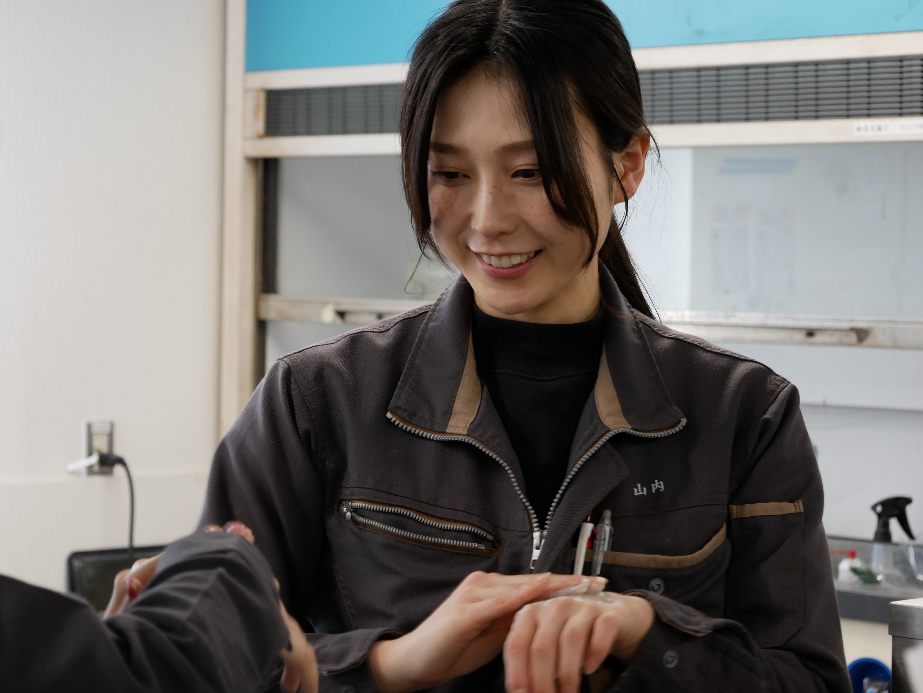 また、ニッチな分野でトップシェアな企業というところにも魅力を感じました。クニミネ工業にしか提供できない「モノ」がある。クニミネ工業という川上企業がないと、最高の川下商品が生まれない。世の中に必要不可欠なメーカーだと思います。